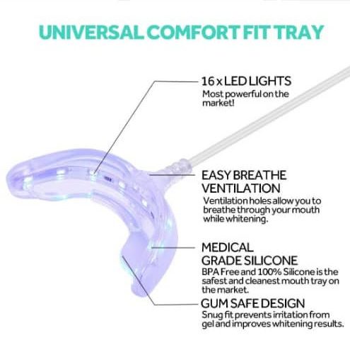 1. Brush your teeth for two minutes 2. Apply the Serum on the Mouth piece of the LED 3. Once the serum has been applied, plug the LED light into your device and put the mouthpiece in. Keep the light In for 10-30 minutes (time varies based on your desired whiteness) 4. After whitening for your desired length of time, unplug and remove the light from your mouth. Rinse both the light and your mouth, and voila! You’re done!